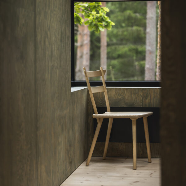 Stolen erbjuds med träsits eller fast, klädd sits. Alva går att få i klarlackad ask, eller betsad i vitt eller svart som standard.